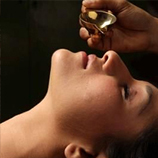 Nasya is an Ayurvedic therapy involving medicinal oils for nasal detox.